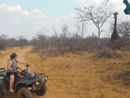 Quad bike-turen er for dig, der gerne vil have pulsen op. Her kører du gennem bushen på firhjulede quadbikes ad støvede spor og åbne strækninger omkring lodgen. Det går stærkt nok til, at du mærker vinden og varmen, men stadig med fuld opmærksomhed på omgivelserne. Det er råt, sjovt og giver safari en helt anden energi end fra bagsædet i en jeep.